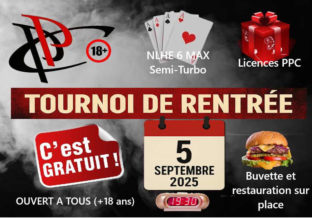 En marge de notre tournoi vous pourrez également si vous le souhaitez adhérer à notre club pour la saison 2025/2026. Toutes les modalités d'inscription au PPC se trouvent ici : ADHESION PPC 2025/2026 - Poitiers Poker Club