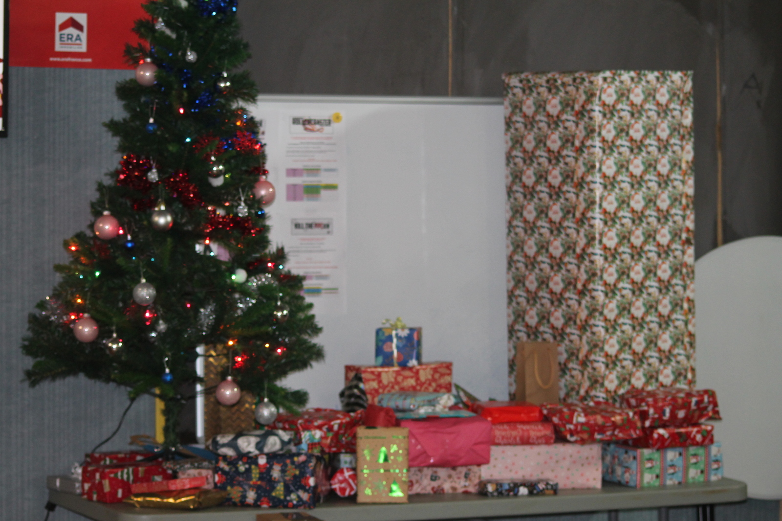 Au cours de la partie, chaque participant a eu la possibilité de gagner des petits lots (paninis, boisson, jetons en plus, etc...) avec le jeu de LaRoueRoueQuiTourne. Chaque joueur éliminé a pu repartir également avec un cadeau choisi au pied du sapin.