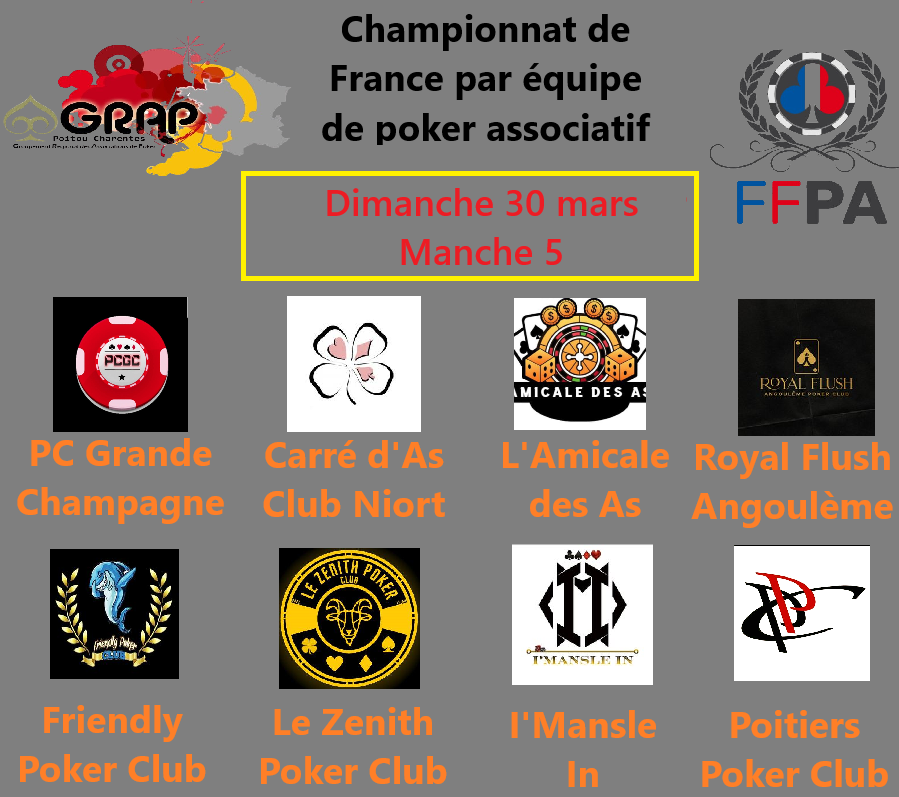 Il s'agit d'une compétition Fédération Française de Poker Associatif FFPA, organisée par le Grap Poitou-Charentes.